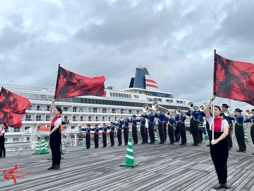 8/1に大さん橋より出向いたしました客船『飛鳥Ⅱ』『飛鳥Ⅲ』のお見送りイベントにてYOKOHAMA ROBINSが演奏を披露いたしました。